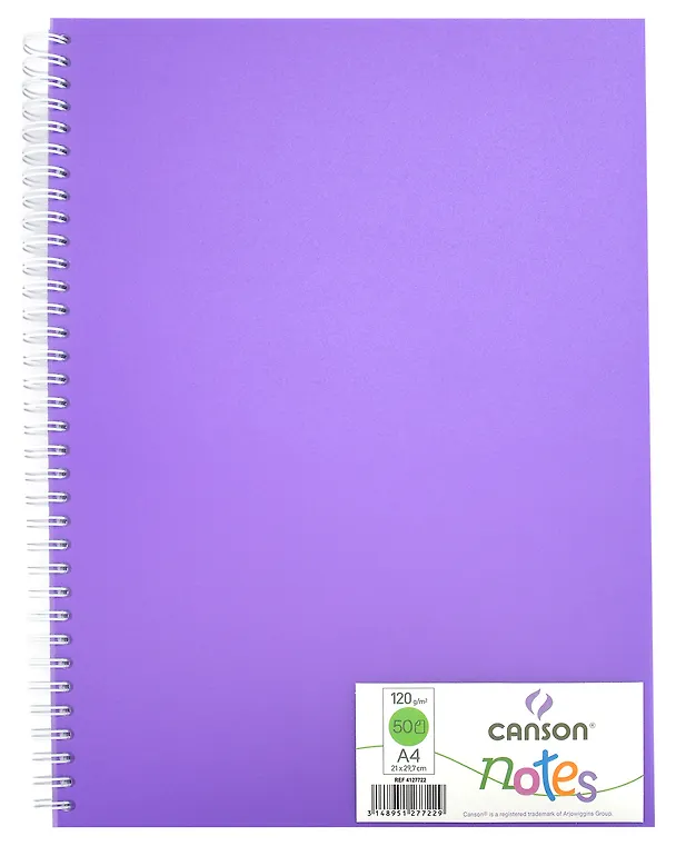Блокнот для эскизов А4 50л "Notes" 120г/м2, фиол.пласт.обл, спираль, Canson