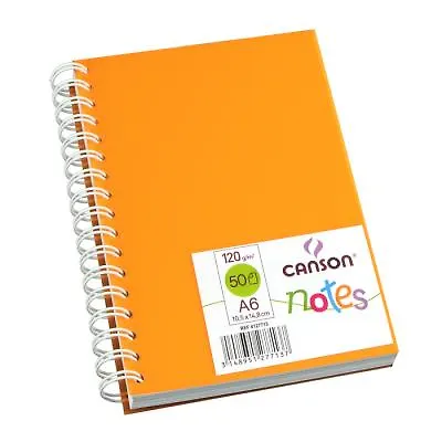Блокнот для эскизов А6 50л "Notes" 120г/м2, оранж.пласт.обл, спираль, Canson