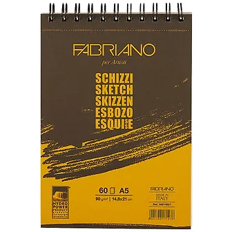 Блокнот для эскизов А5 60 листов "SCHIZZI" верхняя спираль, 90г/м2, Fabriano.