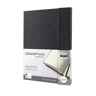 Деловой блокнот Sigel CONCEPTUM ® Softcover. Мягкий переплет, покрытие "Мягкая волна", клетка, нумерация страниц, место для оглавления, эластичная резинка, петля для ручки. 194 стр, 80 гр, А5 135x210x14 мм. Цвет темно-серый