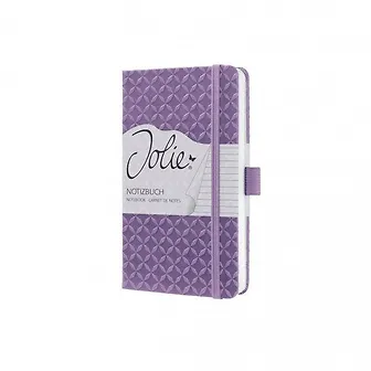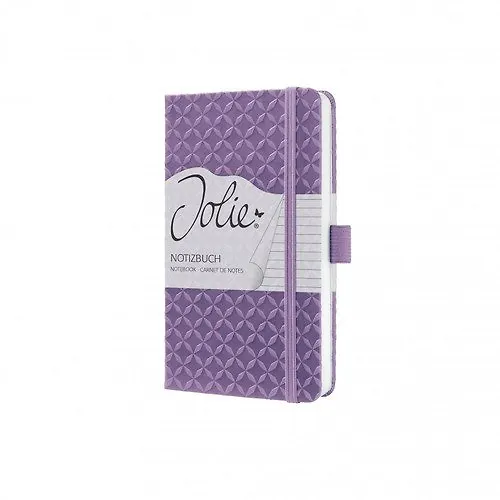 Блокнот Sigel Jolie®. Жесткий переплет, линейка, эластичная резинка, петля для ручки, внутренний карман, 16 перфорированных листов, закладка. 174 стр, 80 гр, А6 95x150x16 мм. Цвет сиреневый