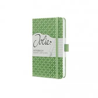 Блокнот Sigel Jolie®. Жесткий переплет, линейка, эластичная резинка, петля для ручки, внутренний карман, 16 перфорированных листов, закладка. 174 стр, 80 гр, А6 95x150x16 мм. Цвет зеленый