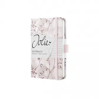 Блокнот Sigel Jolie® Natural beauty. Жесткий переплет, линейка, эластичная резинка, петля для ручки, внутренний карман, 16 перфорированных листов, закладка. 174 стр, 80 гр, А6 95x150x16 мм. Цвет Романтичный красный