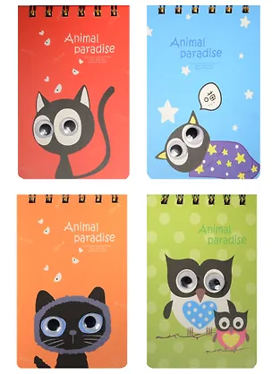 Блокнот на пружине Животные с бегающими глазками (192стр) (14х9)
