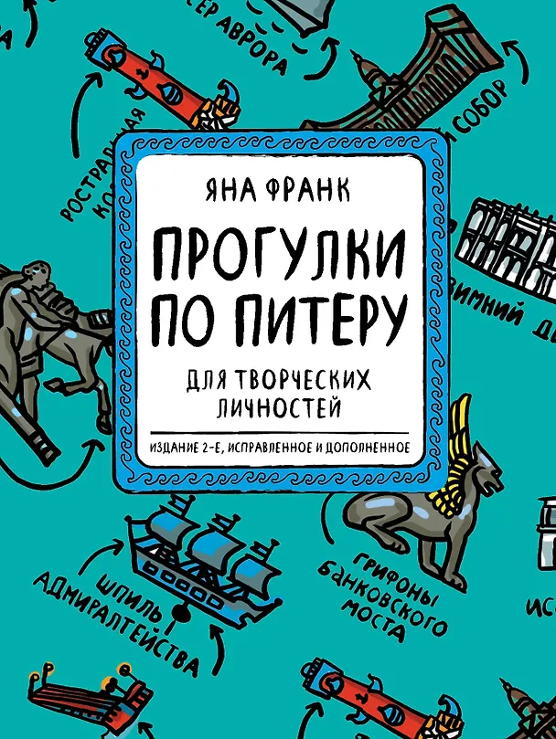Многим доводилось пройтись по Невскому проспекту, прокатиться по Неве и отведать пирожных из кондитерской "Север". Но не каждый знает, что в Санкт-Петербурге можно прогуляться еще и по улице Джона Леннона и посетить настоящий Изумрудный город. Мало кто пробовал разгадать "код счастья" на башне грифонов и разглядеть загадочную замочную скважину на вращающемся шаре. Благодаря этому блокноту-путеводителю вы узнаете много нового о любимом городе и сможете оставить заметки о собственных впечатлениях и идеях. Все иллюстрации выполнены известным дизайнером Яной Франк