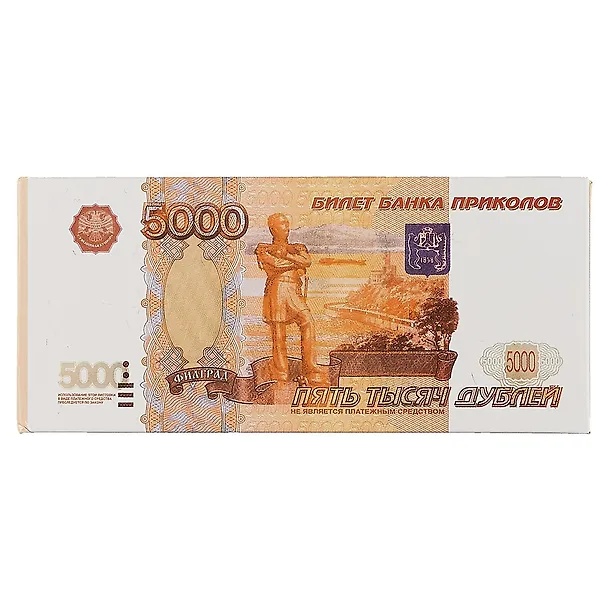Бросайте деньги на ветер с шуточным блокнотом «5000 рублей»! Его отрывные листы сделаны в виде купюр. Удивите друзей щедрым жестом или разыграйте коллег. Такой блокнот станет хорошим подарком на первое апреля.