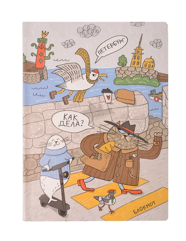 Блокнот «СПб Как дела? Петербург» помогает каждый день оставаться в настроении любимого города. Яркая обложка с атмосферным петербургским рисунком вызывает желание взять его с собой — в университет, офис или путешествие.