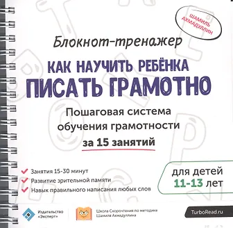 Блокнот-тренажер. "Как научить ребенка писать грамотно" Ш. Ахмадуллин. Для детей 11-13 лет.