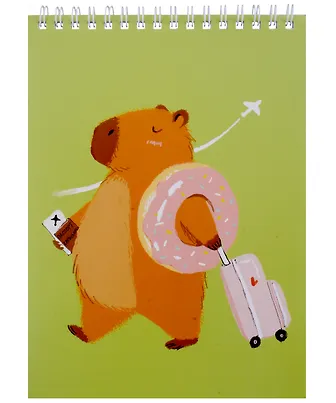 Ну очень-очень забаный блокнот с Капибаром Капибаровым, собравшимся на летний отдых. Обложка шикарная в своей комичности, плюс, капибара - как пройти мимо. Кроме того, она довольно плотная, будет защищать странички блокнота, чтобы они не помялись. Сам блокнот небольшого размера, компактный.