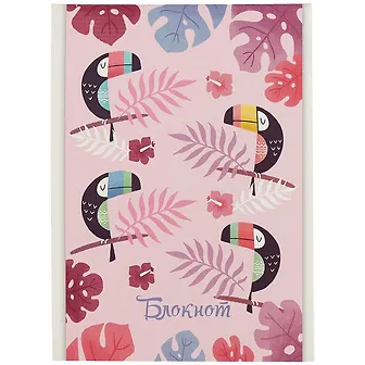 Блокнот А6 40л кл. "ТУКАНЫ" мягк.переплёт, скоба, глянц.ВД-лак