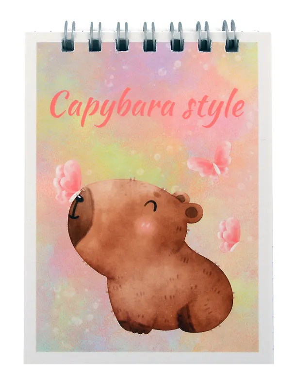 На странице товара ошибка: в двух местах указано, что в блокноте 80 листов, хотя их 60. В остальном милая вещь. Симпатичный рисунок, обложка не твердая, края листов квадратные, поэтому со временем появляются заломы и помятости. Спираль среднего качества сделана не на всю ширину листов, поэтому страницы вырываются не очень аккуратно, перфорации также нет.