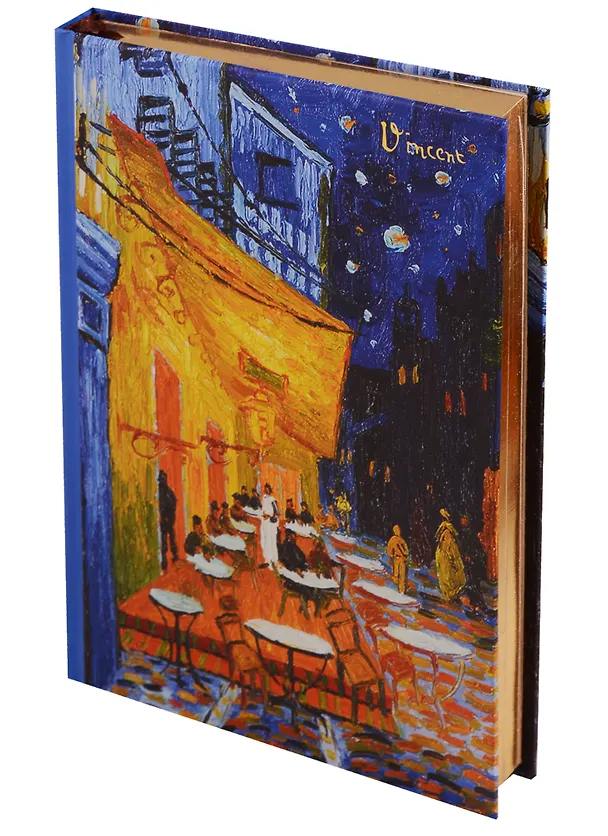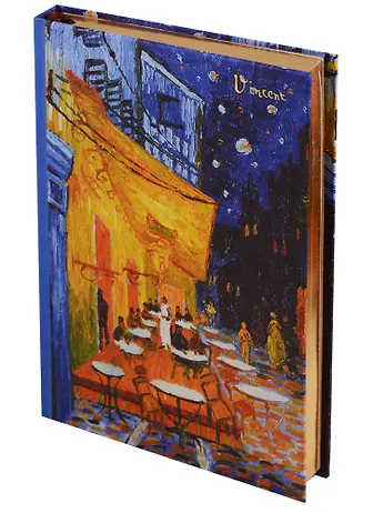 Блокнот привлек внимание обложкой с замечательной и любимой мной картиной Винсента Ван Гога" Ночная терраса кафе в Арле". Репродукция картины на обложке яркая , с обеих сторон. Блокнот среднего размера, с плотными нелинованными листами цвета слоновой кости. Удобно, что имеется ляссе. Такую записную книжку приятно держать в руках, рассматривать и, несомненно, пользоваться. Спасибо.