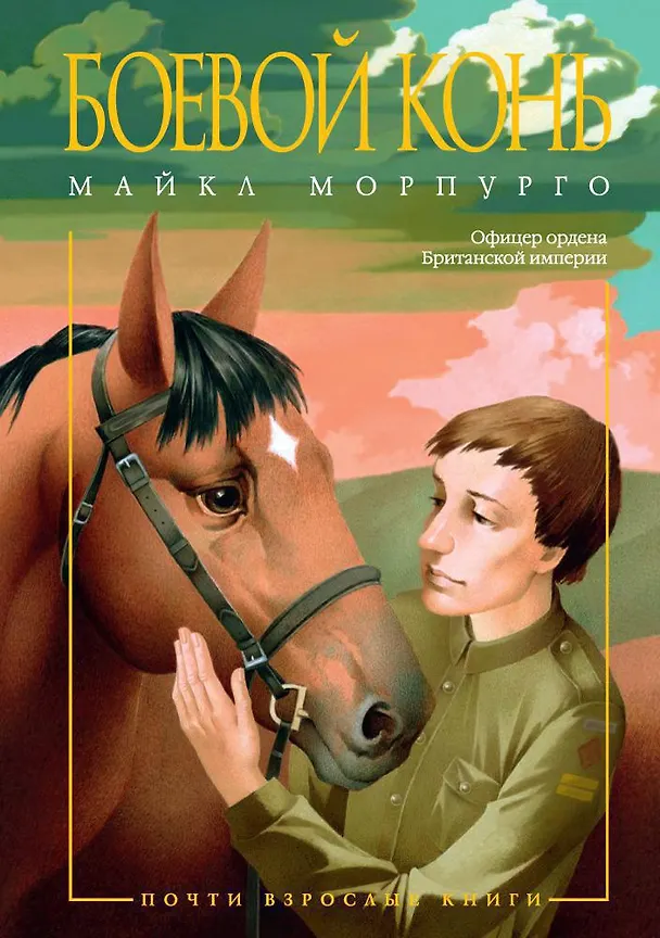 .Роман «Боевой конь», написанный на основе рассказов ветеранов Первой мировой войны, — это история коня по имени Джоуи, который живет на ферме в Девоне с любящим хозяином — пятнадцатилетним Альбертом. В самом начале войны отец Альберта, чтобы рассчитаться с долгами, тайком от сына продает Джоуи на фронт. Отныне Джоуи больше не фермерская рабочая лошадка, а боевой конь: он служит в кавалерии, спасает раненых, возит боеприпасы, терпеливо перенося все тяготы, обретая и теряя друзей и