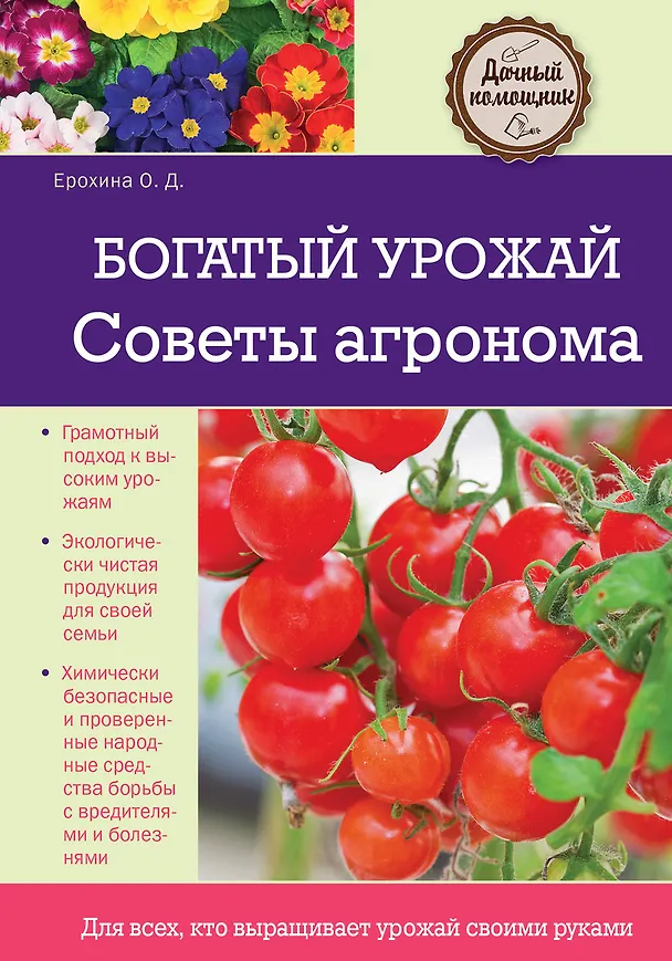 Автор, агроном с многолетним стажем Ольга Ерохина, делится профессиональными секретами. Вы узнаете: - Как защитить огородные и плодовые культуры от болезней и вредителей? - Как понять, что растения страдают от нехватки элементов питания? - Как правильно обрезать плодовые культуры? На эти и многие другие вопросы, относящиеся к азам современного овощеводства и плодоводства, автор отвечает подробно и доходчиво, объясняя, как проще и результативнее добиться высоких и качественных урожаев. Книга предназначена для самого широкого круга отечественных дачников, которые собственными силами выращивают на загородном участке овощные, ягодные и плодовые культуры.