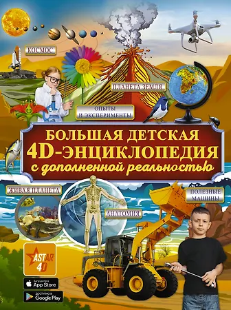 Эта развивающая 4D-энциклопедия с элементами дополненной реальности приводит разносторонние сведения из различных областей знаний, тем самым помогая глубже изучить окружающий мир в его многообразии. Образование Вселенной, зарождение жизни, эволюция и естественный отбор, возникновение человека, анатомия и физиология, технический прогресс и исследование космоса — яркий рассказ обо всем этом впечатляет и вызывает желание провести собственный научный эксперимент. И книга дает читателю такую возможность: здесь имеются описание и анимация несложных, но полезных познавательных опытов. А благодаря