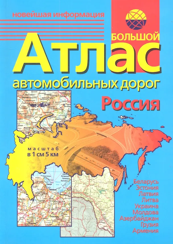 Большой атлас автомобильных дорог: Россия, Беларусь, Эстония, Латвия, Литва, Украина, Молдова, Азербайджан, Грузия, Армения. Масштаб в 1 см 5 км. Новейшая информация.