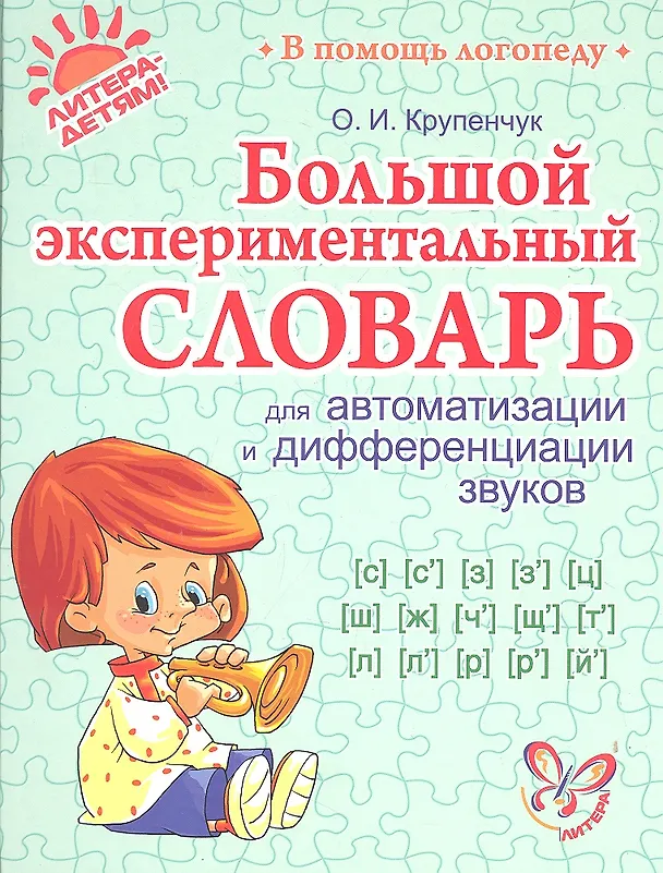 В книге известного петербургского логопеда О. И. Крупенчук предложены слова, словосочетания, предложения и двустишия для автоматизации и дифференциация звуков [с], [с',], [з], [з',] [ц], [ш], [ж] [ч',] [щ',], [т',],[л], [л',], [р], [р',], [й',]. Для удобства пользования материал сгруппирован в таблицы. . Отрабатываемый звук даётся в разных позициях: ударных, безударных; в начале, середине, конце слова...