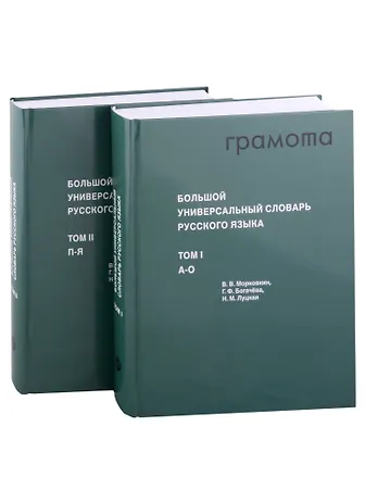 Большой универсальный словарь русского языка - первый российский словарь мирового уровня, встающий в один ряд с всемирно известными универсальными изданиями Oxford University Press, Longman (Pearson Education) и Duden и не имеющий аналогов в современной русской лексикографии. Это результат многолетнего труда авторского коллектива под руководством доктора филологических наук, профессора В. В. Морковкина.