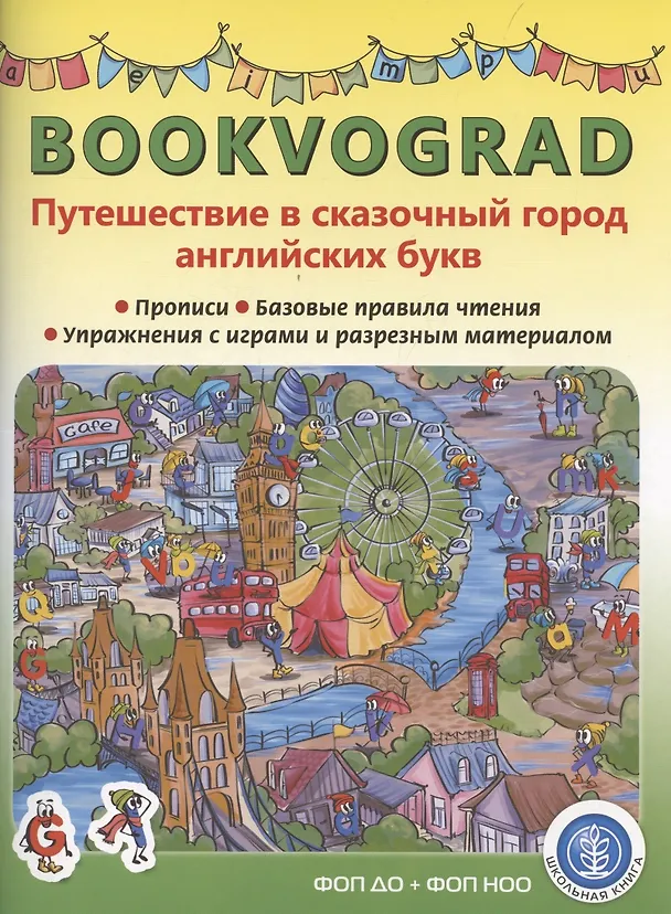 BOOKVOGRAD. Путешествие в сказочный город английских букв Прописи. Базовые правила чтения. Упражнения с играми и разрезным материалом. Учебное пособие от 6 лет.