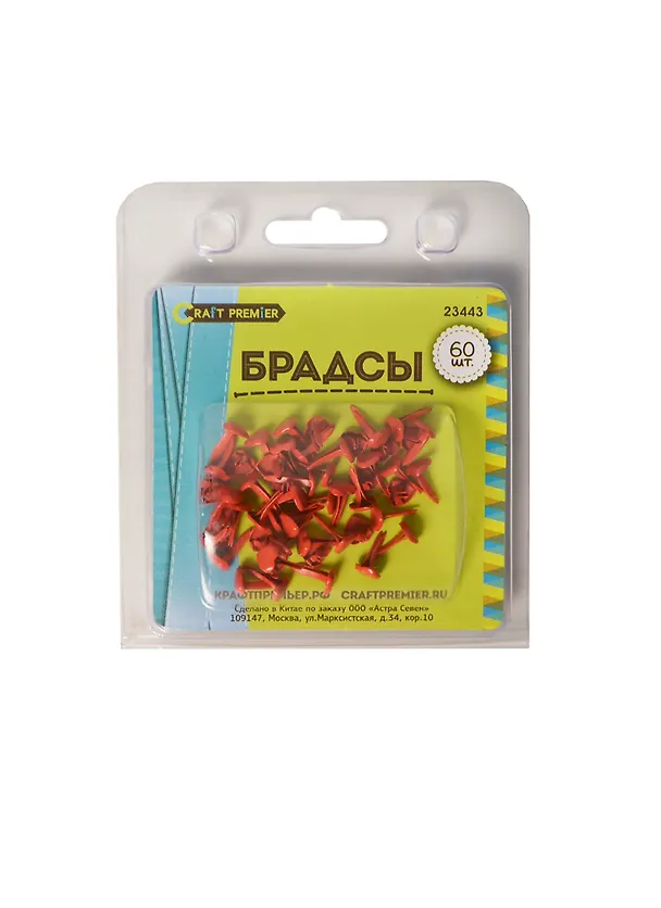 Брадс - декоративное украшение в виде шляпки на двух металлических ножках. Ножки вместе вставляются в одно отверстие и отворачиваются в разные стороны. Используется для крепления деталей или самостоятельно как декоративный элемент.