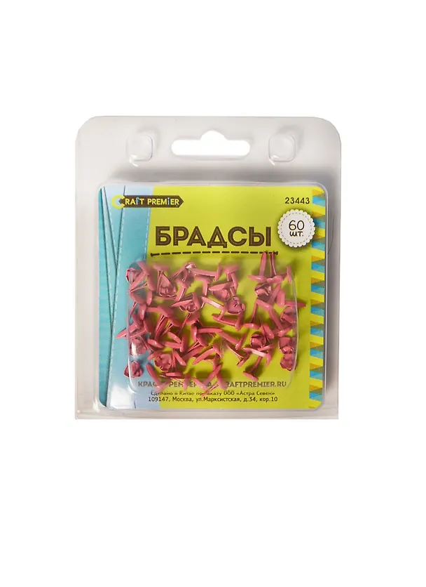 Брадс - декоративное украшение в виде шляпки на двух металлических ножках. Ножки вместе вставляются в одно отверстие и отворачиваются в разные стороны. Используется для крепления деталей или самостоятельно как декоративный элемент.