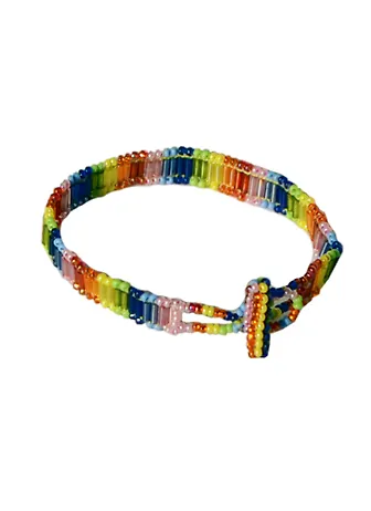 Браслет вязаный из бисера и стекляруса полосатый разноцветный - украшение для девочек.