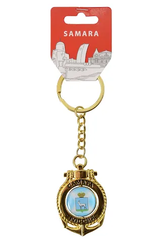 Брелок-якорь золотой Стелла Ладья,Герб (металл) (Самара) (121G18K-55-1-55-3). Центральная часть вращается вокруг оси, с одной стороны — герб города, с другой — достопримечательность.