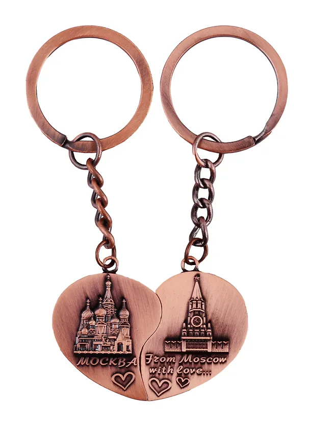 Брелок в виде половинок сердца станет отличным сувениром для влюблённой в Москву и друг друга пары.
