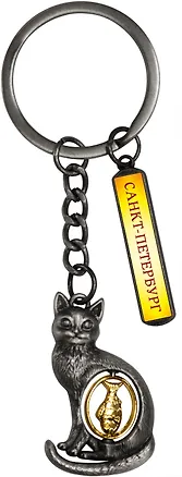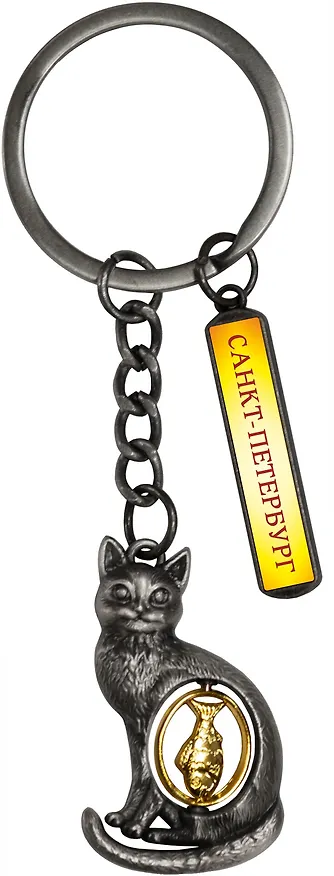 Брелок фигурка Кот с рыбкой Санкт-Петербург цв.ант.олово