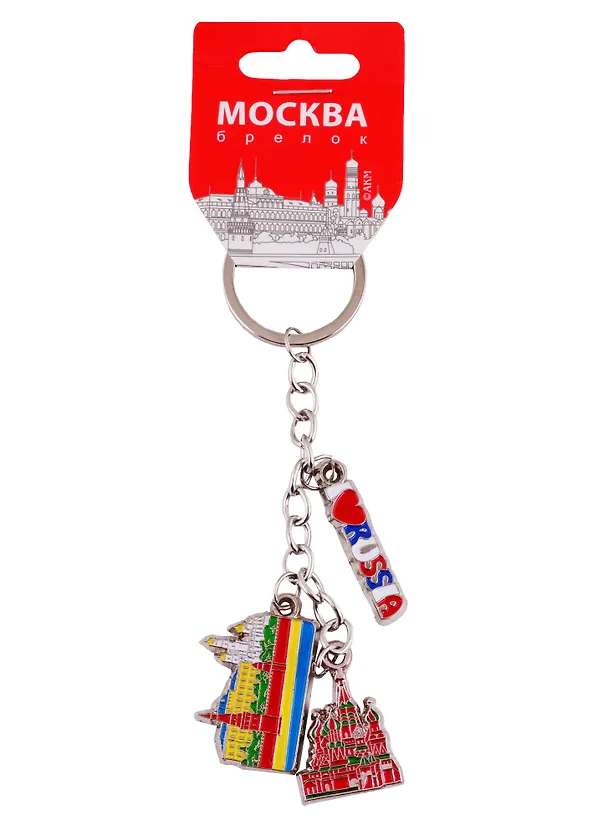 Яркий брелок с красным сердцем и символами города станет отличным сувениром из русской столицы.