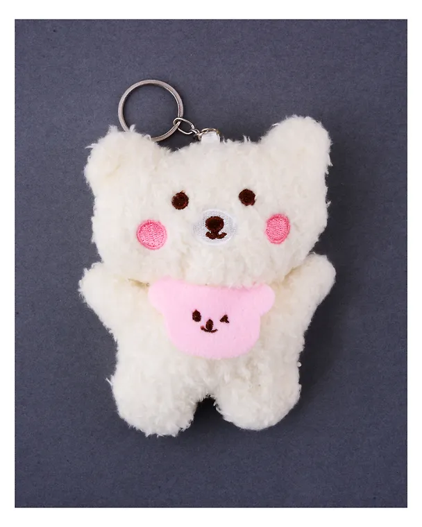 Соединительное кольцо, выступающее посредником между карабином и мишкой пришито к нему нитками, которые легко проходят в небольшую щель между концами кольца и мишка отпадает от карабина, у меня такое произошло сразу на выходе из магазина, хорошо что заметила иначе потеряла бы сразу. Пришлось пришить сам карабин к мишке, чтобы было надёжнее