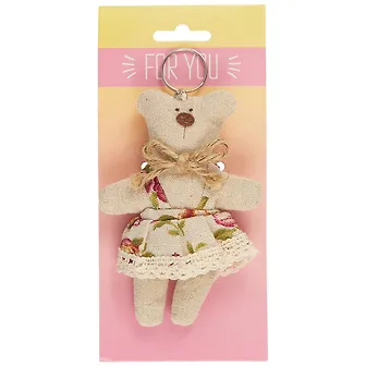 Брелок Медвежонок в платье на открытке (текстиль) (13см) (12-06844-1700168В)