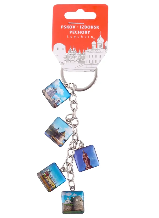 Брелок металлический гроздь квадраты 5 "Псков-Изборск-Печоры"