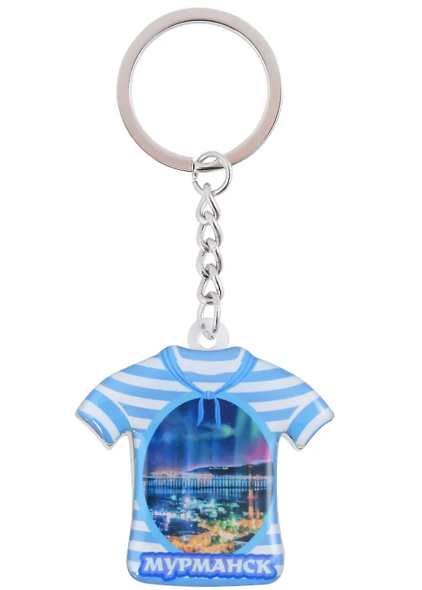 Брелок Мурманск с заливкой смола Футболка Достопримечательности города вид 2 (7,5,8х 7,5 см.) (акрил-металл)