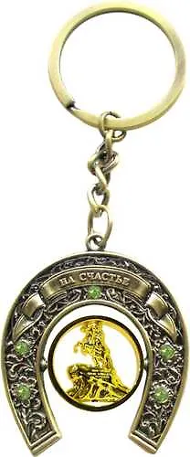 Брелок-подкова "Медный всадник", метал.вставка-фигурн.(цв.зол), цв.бронза, 126BR-8-03G