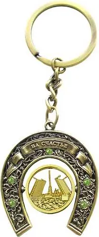 Брелок-подкова, АКМ, метал.вставка-фигурн.(цв.зол)Мостыцв.бронза, 126BR-8-04G
