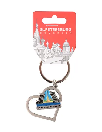 Брелок сердце с движ.фигуркой СПб. Мосты, цв.мат.хром