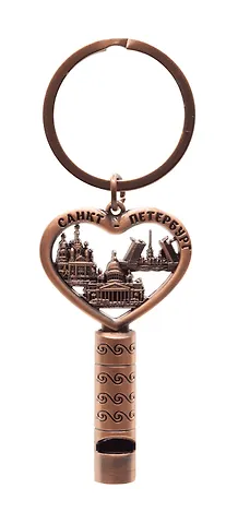 Брелок сердце свисток СПб.Коллаж Исаакий, цв.медь