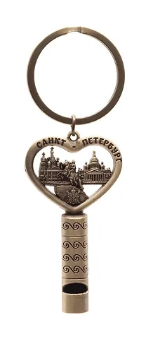 Брелок сердце свисток СПб.Коллаж Медный, цв.бронза