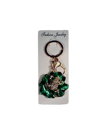 Брелок со стразами Лягушка на листе металл. . . . . . . . . . . .
