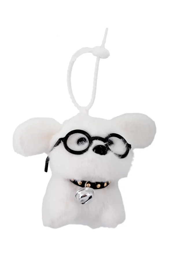 Брелок Собачка белая в очках (текстиль) (13см) (12-Ziheng-202508-XP8)