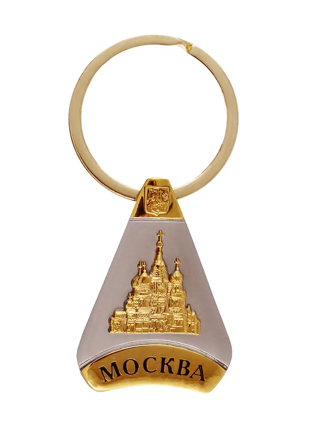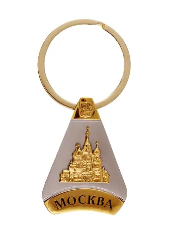 Серебристый брелок с золотым изображением храма Василия Блаженного будет отличным сувениром из российской столицы.