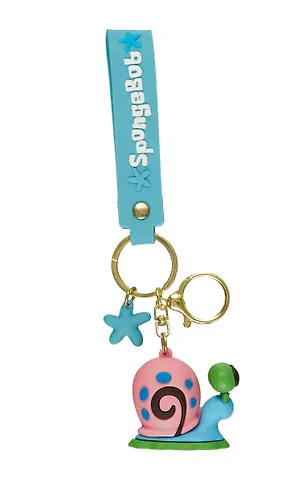 Брелок состоит из самой улитки, выполнений из резины ярких цветов, синей подвески с надписью SpongeBob, золотого кольца для ключей и карабина.