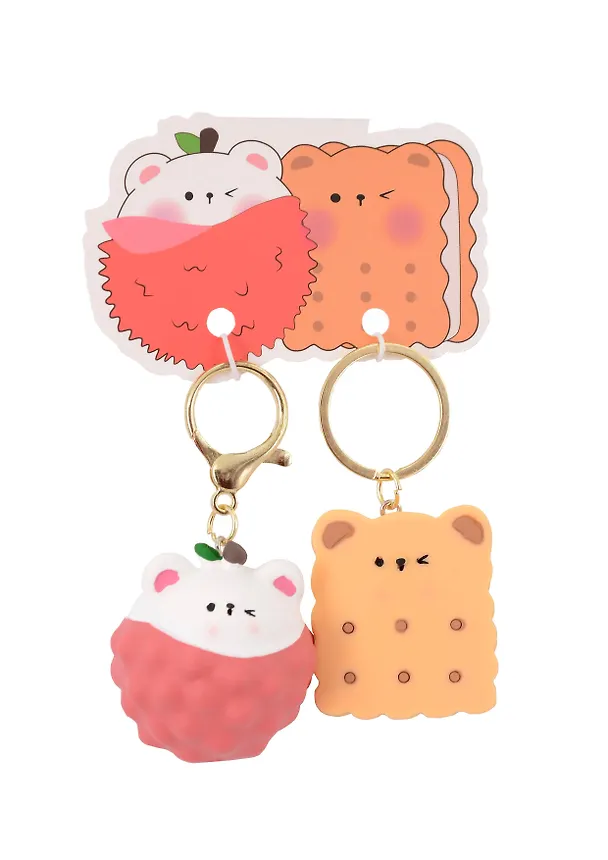 Симпатичные брелоки в виде котёнка в образе восковницы (китайская клубника) и что неожиданно медвежонка - печеньки. Достаточно милые парные брелоки, неплохо покрашены, качественные, поэтому будут хорошим подарком для лучшей подруги или сестры. По стандарту как и у всех парных брелков - разный вид крепления, у одного кольцо, а у другого карабин, но здесь вкусовщина, кому, что больше из фурнитуры нравится. Что не мало важно крепление очень качественное, прочное, поэтому брелок не потеряется.