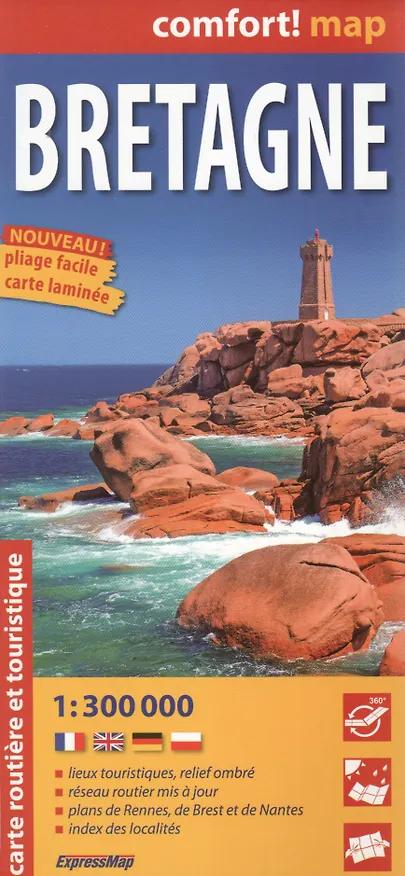 Bretagne = Бретань. Ламинированная карта. 1:300 000
