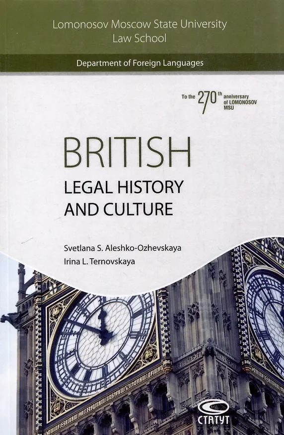 British Legal History and Culture highlights the most important periods in the legal history of the United Kingdom from 1066 up to 2005 with the emphasis on major historical events and prominent figures, the development of government and law, the evolution of the legal system. The textbook helps readers to better understand legal English as it appears in contemporary written contexts, to master reading and speaking skills, to use terminology effectively and to acquire the background knowledge necessary for further studies in law and history.