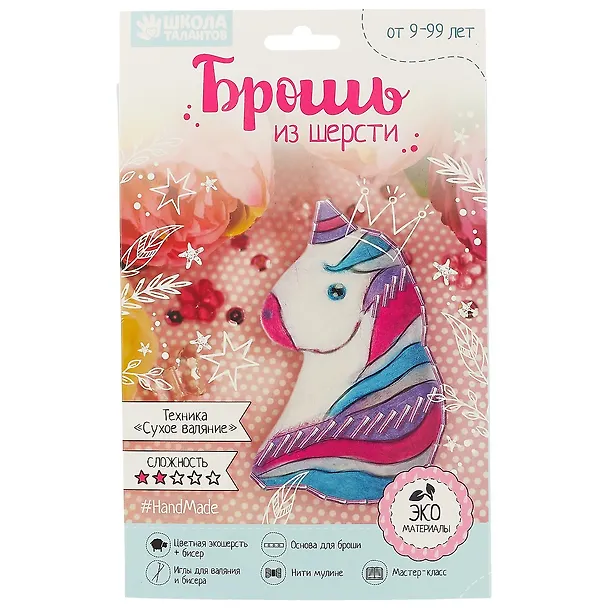 Брошь из шерсти Единорог (2932517) (Школа талантов) (9+) (коробка) (Арт Узор)