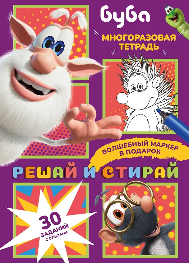 Буба и его друзья собрали для тебя множество заданий на логику, внимание и воображение! Решай забавные задания, разгадывай хитрые головоломки, проходи запутанные лабиринты и рисуй любимых героев. Скорее бери волшебный маркер и не бойся ошибиться – его всегда можно стереть и записать ответы заново!