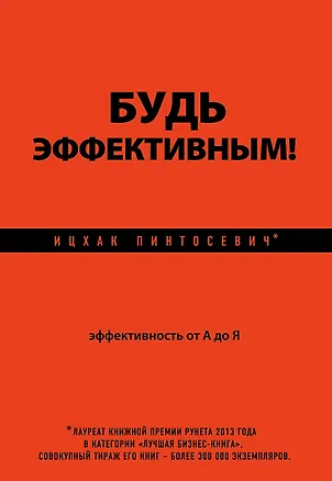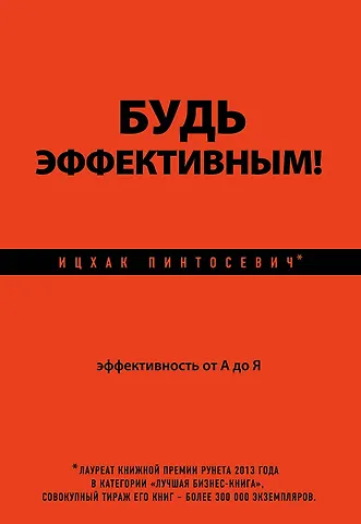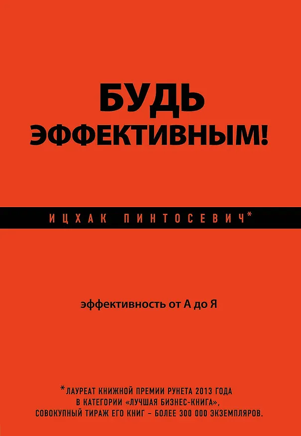 Будь эффективным Эффективность от А до Я. Ицхак Пинтосевич сделал энциклопедию, в которой структурировал все, что у него было раньше. Очень удобно. если нужно что то вдруг посмотреть. Новеньким будет не очень удобно, а тем, кто уже что то читал, вполне. Хотя по- моему, автор уже просто решил заработать- можно и обойтись без этой книги.