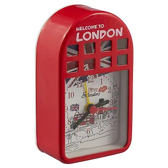 Будильник в классическом британском стиле по форме напоминает знаменитые красные телефонные будки. На циферблате изображены символы английской столицы: Вестминстерский мост, Биг Бэн и бифитер – стражник лондонского Тауэра. А над циферблатом развевается британский флаг.